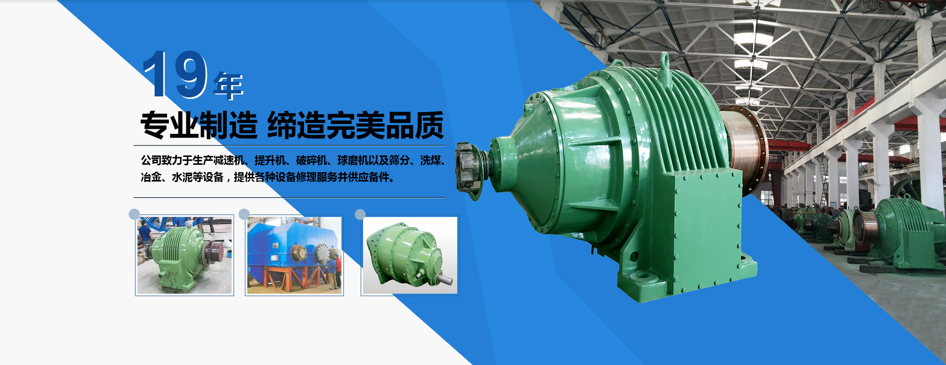 公司致力于生產減速機、提升機、破碎機、球磨機以及篩分、洗煤、冶金、